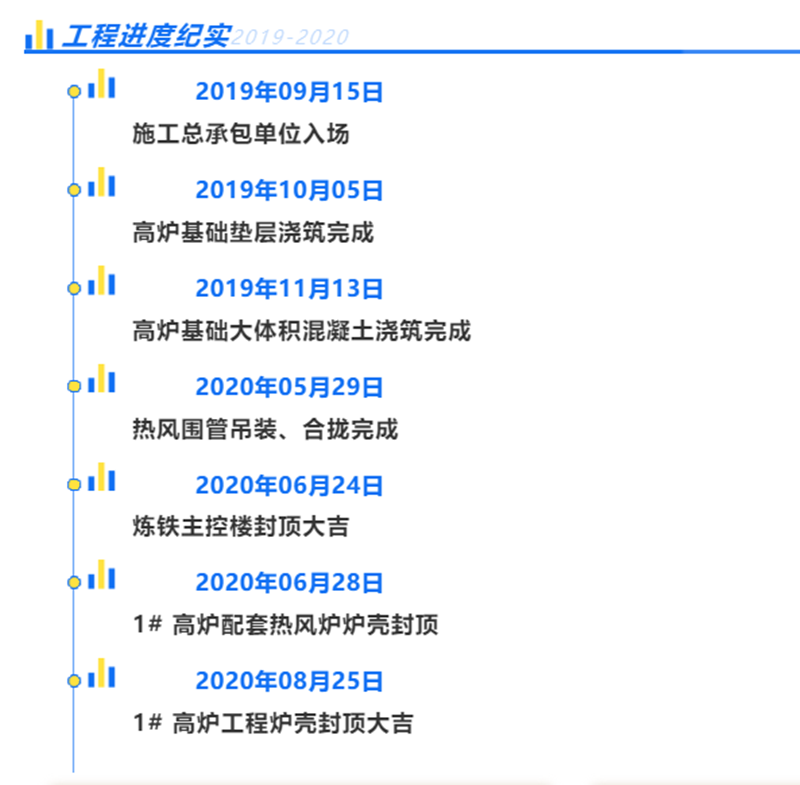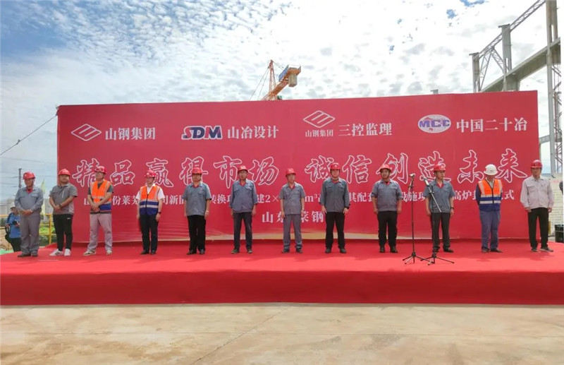 2020年8月25日,由山冶設計總承包的山鋼股份萊蕪分公司1#3800m3高爐工程舉行爐殼封頂儀式。山鋼股份萊蕪分公司新舊動能轉換項目工程指揮部副總指揮李綱、副經理田慶元,煉鐵廠經理、高爐工程項目經理部經理張明,新舊動能轉換項目工程指揮部高爐工程項目經理部常務副經理賈友劍及施工、監理等相關單位領導出席了儀式,山東省冶金設計院股份有限公司黨委書記谷卓奇代表總承包單位發表講話。