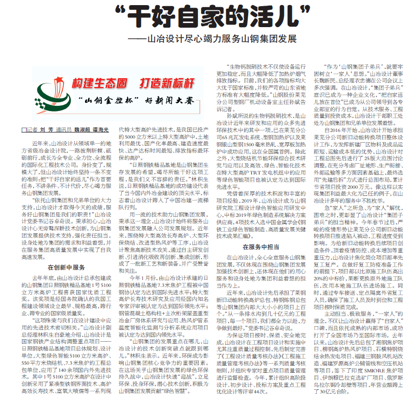 “干好自家的活兒”——山冶設計盡心竭力服務山鋼集團發展