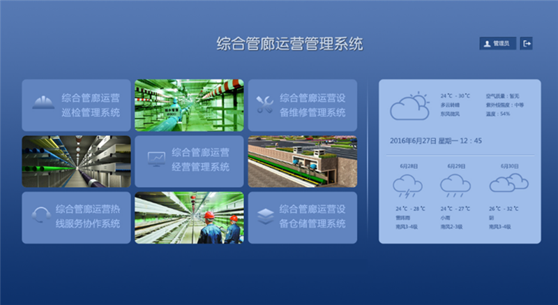 智慧管廊:以“知、控、警、決、管、營、享”為管理方針,以大數據、物聯網、云架構、智能組態、綜合業務決策分析、人工智能等技術為支撐,結合城市地理信息系統(GIS)和建筑信息模型(BIM),通過整合各數據分析,構建指揮統一、功能齊全、反應靈敏、運轉高效的管廊運行綜合管理平臺,包括1個中心、1個平臺、7個應用系統、N個終端,對綜合管廊內環境、設備及運行進行實時監控、運營管理和安全預警,提高決策指揮效率,切實提高處置突發安全事件的能力,以保障系統安全、高效運行。